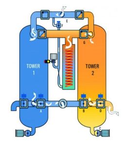 خشک کن دیسکانت علاوه بر برج های حاوی مواد جاذب رطوبت، دارای قطعات و تجهیزات خاصی می باشد که به